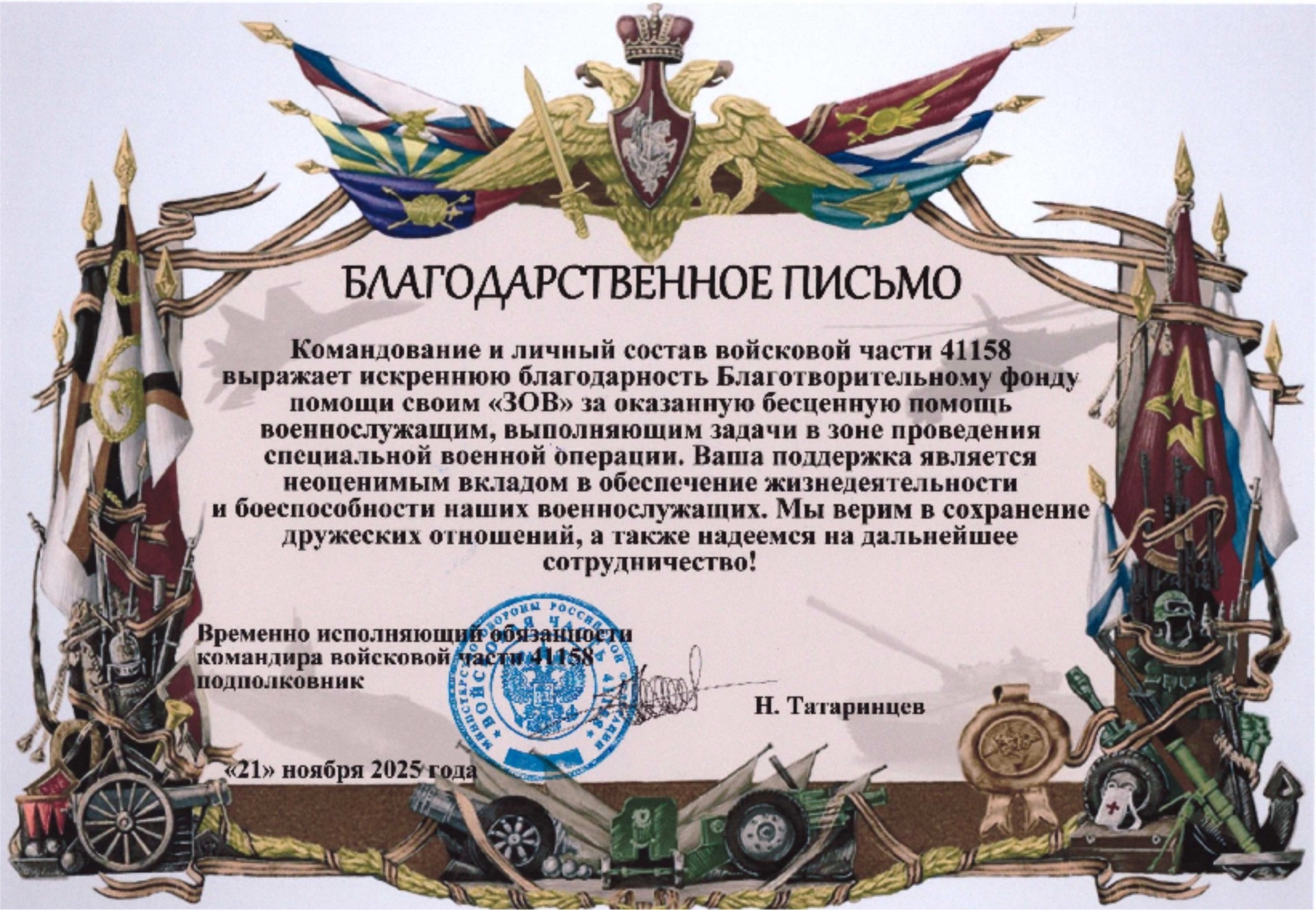 Благотворительный фонд поддержки своим ZOV – это проект, направленный на поддержку простых солдат. Мы не сотрудничаем с различными пунктами сбора гуманитарной помощи, а помогаем адресно. Своими силами мы возим на передовую все, о чем нас просят бойцы